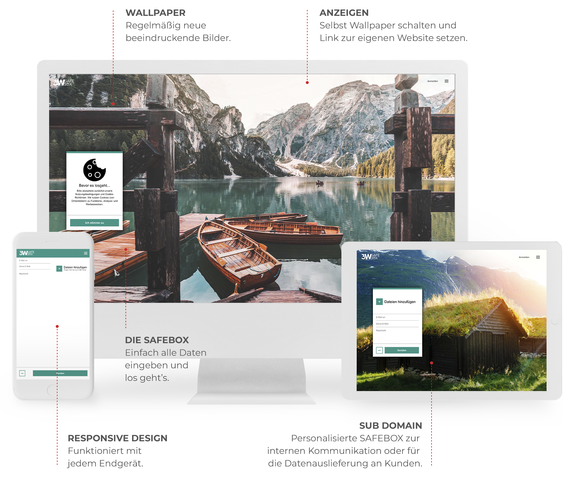 Schneller und sicherer Datentransfer aus Deutschland: 3W SAFEBOX sorgt für den einfachen Versand großer Datenmengen. Nutzer profitieren außerdem von der benutzerfreundlichen Bedienung, eigenen Subdomains und individualisierbaren Designs.